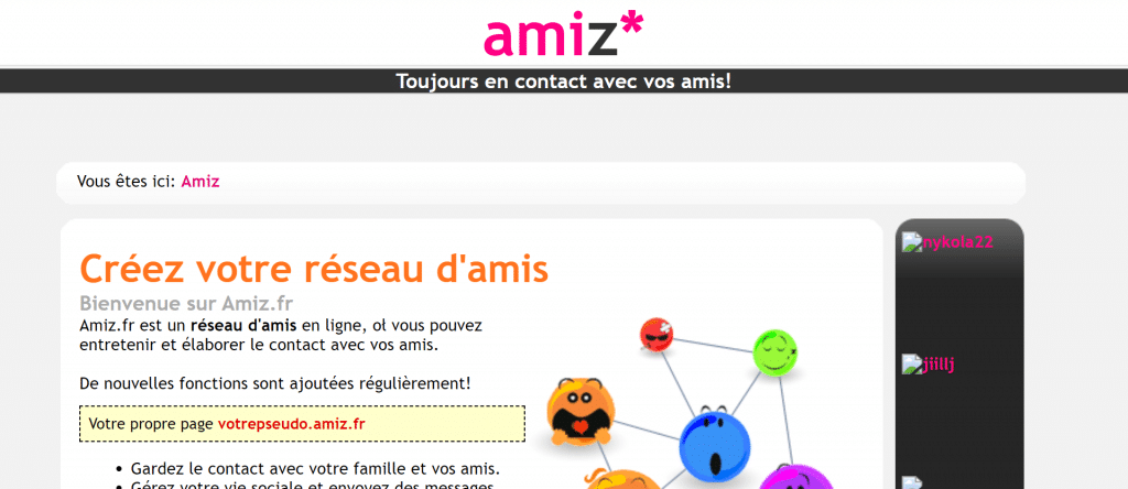 AmiZ.fr est un site internet conçu pour favoriser la rencontre entre des personnes situées dans le même secteur géographique. Les buts de ces rencontres varient en fonction des utilisateurs. Il peut s’agir d’activités comme des soirées cinéma, des sorties au restaurant, le tour des bars, et bien d’autres activités encore.